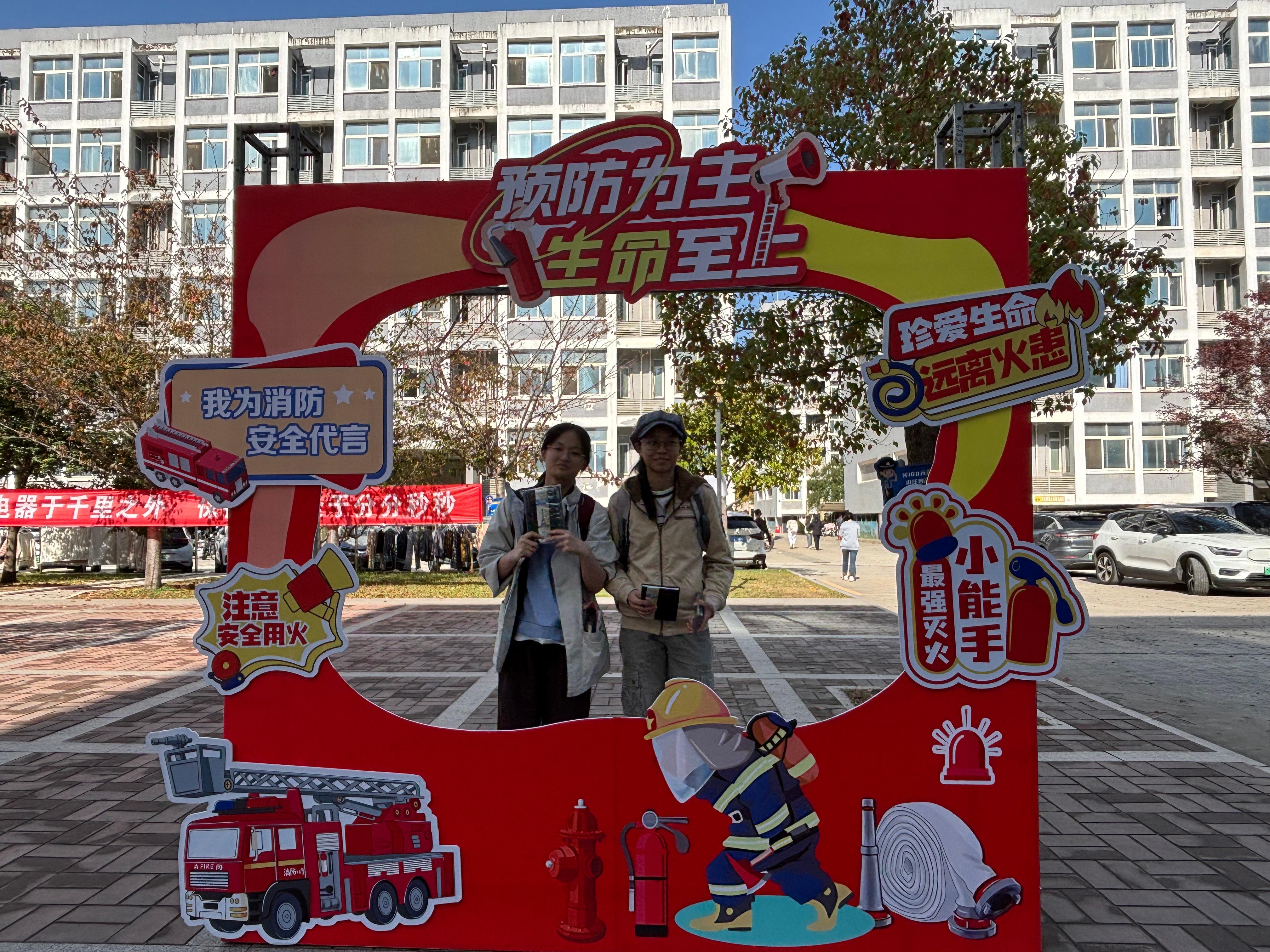 活动现场设置了多个体验环节,包括疏散逃生体验、违章电器展示、消防器材展示、消防主题打卡、安消套宝游戏、消防知识抢答、触电体验以及灭火体验等。工作人员现场讲解了在宿舍使用违章电器的危害、常见消防器材的功能和使用方法、火灾逃生技能等知识,并通过电子屏循环播放消防安全宣传视频。同学们在模拟灭火、疏散逃生、触电体验等互动环节,以及轻松有趣的套圈游戏中,学习消防知识、掌握应急技能,切身感受消防安全的重要性。