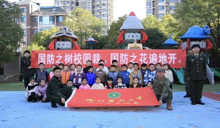 走出校园,中心将国防教育延伸至更广阔的社会场景:组织成员走进邳州王杰纪念馆、新沂宿北大战纪念碑亭、贾汪运河支队抗日纪念馆等红色教育基地开展研学,在寻访红色印记中持续强化成员的历史使命感与社会责任感;组建“爱我国防”实践团开展“三下乡”暑期社会实践活动,赴泗洪、微山湖等地区开展国防知识宣讲,推动国防教育走进乡村、扎根基层;联动属地幼儿园开展“国防之树校园栽,国防之花遍地开”系列活动,通过升国旗、国防知识小讲座、童心绘祖国等形式播撒国防安全的种子,推动国防教育全民化、常态化。